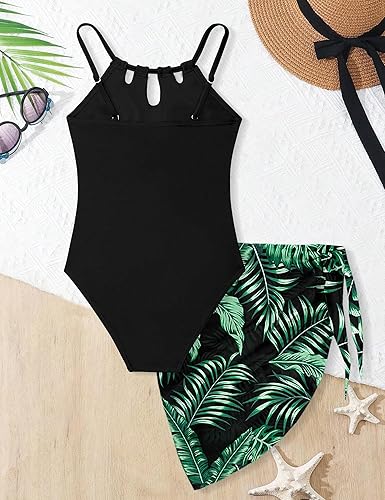 Unique Design: The girls one piece bathing suit with unique cut out solid color design, coupled with the adjustable spaghetti straps and tropical print cover up skirt flatters most body types. The one piece design provides a comfortable fit, while the quick dry swimsuit cover up adds an extra touch of style.