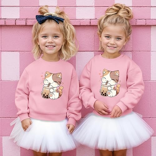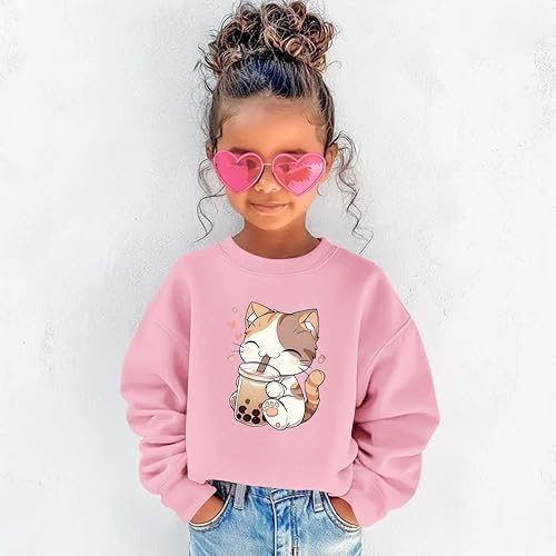 Material: Cute cat bubble tea sweatshirt kids is made of cotton blend, girls cat sweatshirt is skin-friendly and soft, enough for all day wear,adorable cat sweatshirt kids