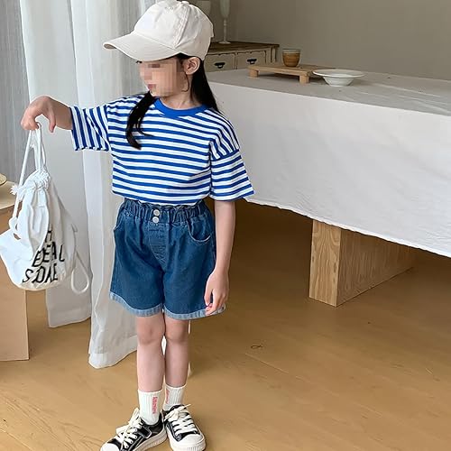 Kids girls casual short sleeve striped T-shirt made of high quality breathable fabric, super soft and comfortable, lightweight and breathable, skin-friendly and stretchy, the perfect partner in daily days.