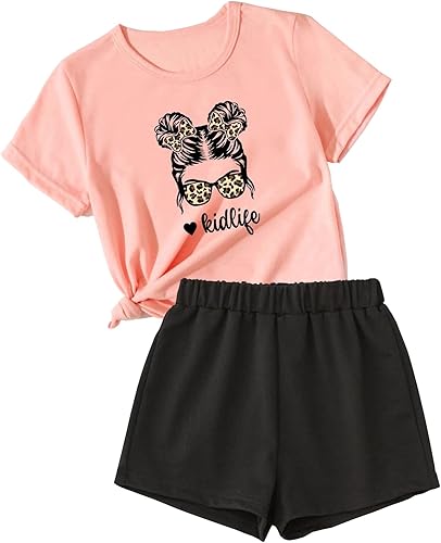 FASHION DESIGN: Character Printed short sleeve top with trendy Figure or “Kidlike” letter printed. Variety of colors and prints, Cute toddler girl outfit short set. Popular pattern print and stylish outfit, Elastic waist shorts