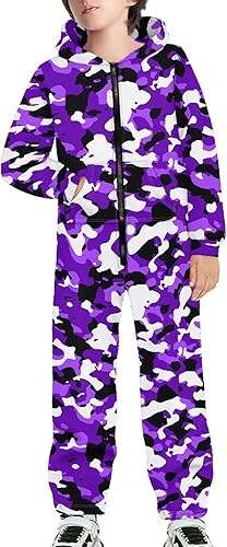 Thoughtful Design: Zipper hoodie jumpsuit with large pockets for convenience. Neon paint and camouflage pattern hoods add style while providing extra wind protection and warmth.