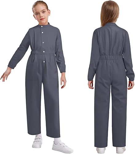 Kids Boys Girls Long Sleeve Mechanic Coveralls Flight Suit Jumpsuit Fancy Dress Up Casual Straight Leg Rompers Grey 8 Years
