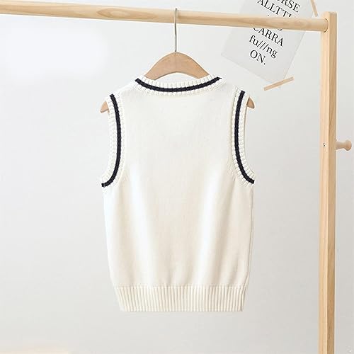 Kids Boys Girls V Neck Knit Vest Sleeveless Pullover Vintage Knit Sweater Vest Teen Preppy Pullover Top Loose Sweater(White,11-12 Years)