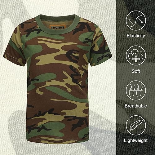 TWCHAS Kids Camo T-Shirt: Made from a premium Soft Cotton Blend T-Shirt fabric (60% cotton and 40% polyester), designed to keep your little ones comfortable all day long. Perfect for boys and girls who love to explore, play, and stay active.