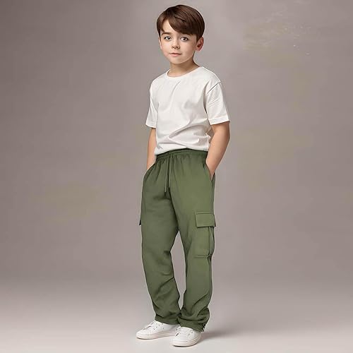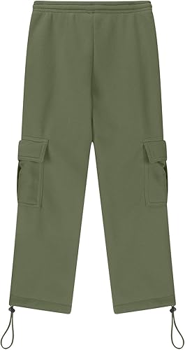 Kids Cargo Cotton Sweatpants Baggy Wide Leg Elastic Waist Sweat Pants Fall Thick Warm Outdoor Long Trousers with(Ag,13-14 Years)