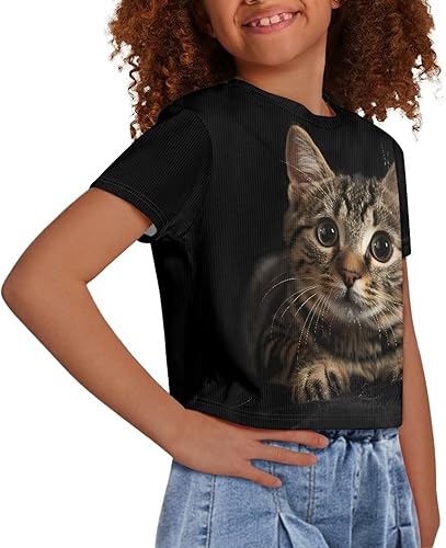 MATERIAL: Girls crop tops is made high quality polyester, fabric has slight stretch, breathable, soft, durable and lightweight, it is a ideal tee shirts summer clothes for your kids.