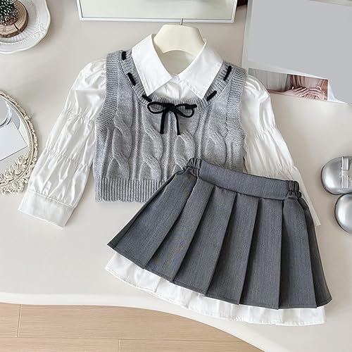 Stylish 3-Piece Set Includes A Knit Vest, Skirt, And Shirt For A School-