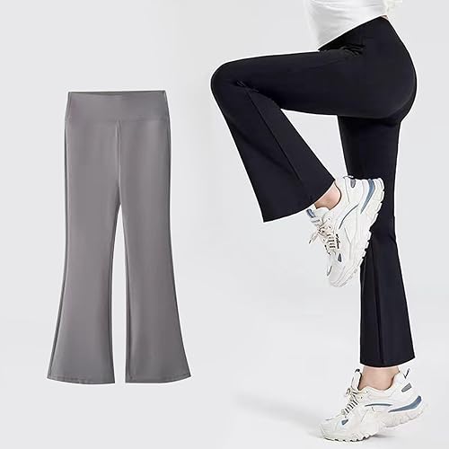 Kids Flare Trousers for Girls Soft Stretch Dress Bell Bottoms Solid School Uniform Pants High Waisted Skinny Trousers(Grey,5-6 Years)