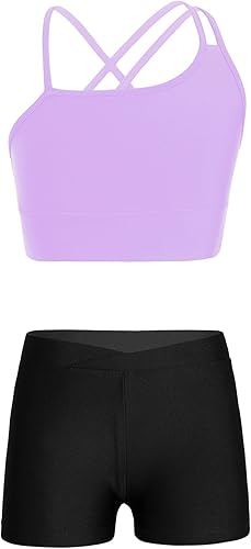 Kids Girls Asymmetrical Strappy Crop Top with V-front Waistband Shorts