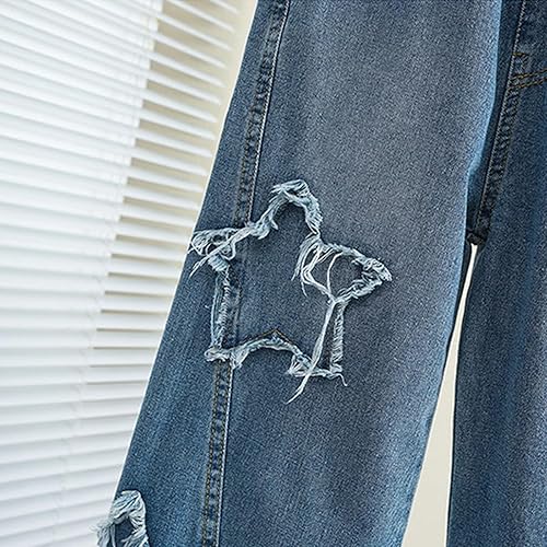 Kids Girls Baggy Straight Jeans Ripped Distressed Wide Leg Elastic Waist Denim Pants Washed Streetwear with Pockets(Light Blue,10-11 Years)