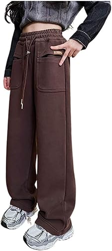 Kids Girls Baggy Straight Sweatpants Wide Leg Elastic High Waist Joggers Athletic Pants Casual Comfy Soft Trouser(Coffee,6-7 Years)
