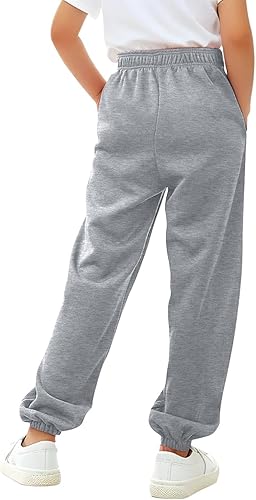 Kids Girls Baggy Stretchy Sweatpants Solid Color Elastic High Waist Athletic Pants Teens Comfy Soft Trouser Jogger(Light Ashy,3-4T)