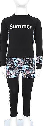 Kids Boys Long Sleeve Cartoon Dinosaur Print Tops Pants and Shorts Swimming Suit