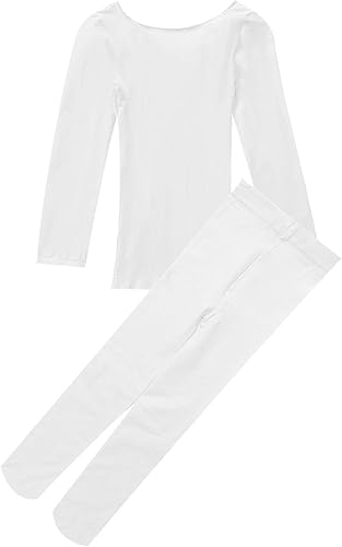 2Pcs Kids Girls Stretchy Ballet Dance Bottoming Suit Long Sleeve Top Elastic Waistband Pantyhose