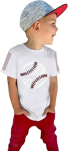 Kids Girls Boys Short Sleeve Tops Baseball Graphic Crew Neck Teen Summer Tee Preppy T-Shirts Casual Loose(White,4-5T)