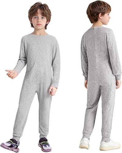 Kids Girls Boys Special Needs Adaptive Clothing Autism Long Sleeve Jumpsuit Anti-strip Overall Grey 14 Years