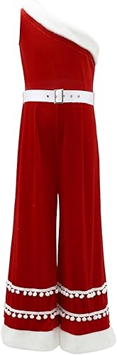 The one-shoulder design is trendy and fashionable, adding a unique and stylish touch to the classic Christmas look
