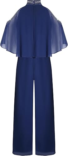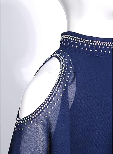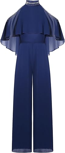 Kids Girls Cold Shoulder Sparkly Jumpsuit Romper One Piece Wide Leg Pants For Wedding Party Navy Blue 12 Years