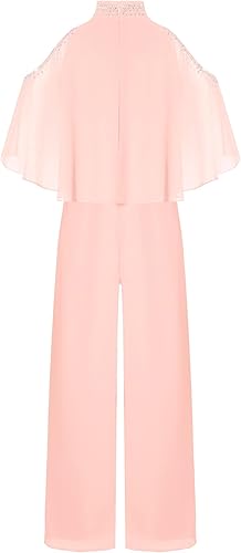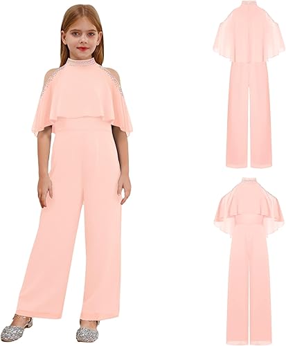 Kids Girls Cold Shoulder Sparkly Jumpsuit Romper One Piece Wide Leg Pants For Wedding Party Pink 6 Years