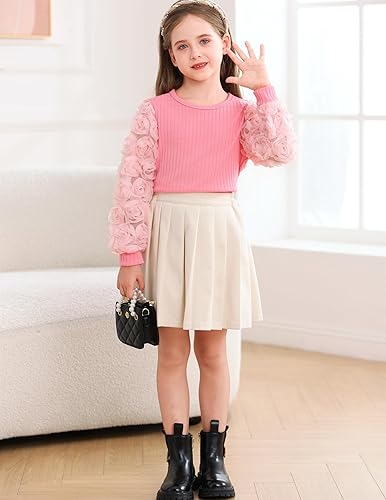 Design: This girl ruffle long sleeve made of so soft,stretchable, flexible and comfortable fabric to wear. With unique design of crew neck, floral long sleeve,which is pretty and adorable for girls holiday or casual wear.The solid classic colors can go with most shoes or jeans and are great as a multi season choice.