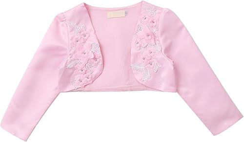 Kids Girls Sheer Color Long Sleeve Embroidered Flowers Diamonds Cropped Top Coat Poncho Capelet Wrap For Wdedding Dress Princess Dress Party Dress