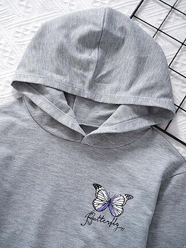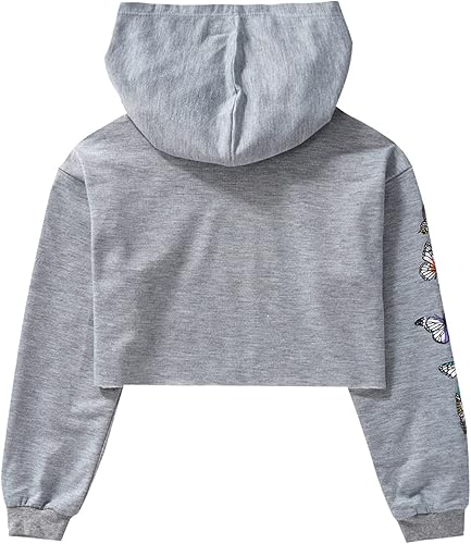 Kids Girls Casual Solid Color Hooded Long Sleeves Butterfly Print Cropped Sweatshirt