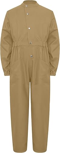 Kids Girls Mechanic Coveralls Flight Suit Long Sleeve Cargo Jumpsuit with Pockets for Halloween Party Khaki 8 Years