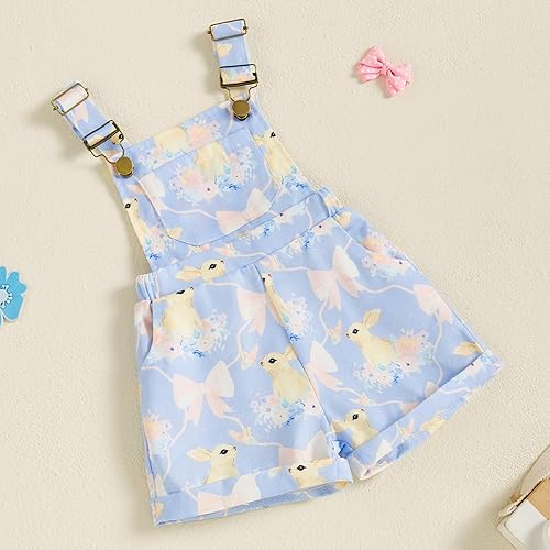 Kids Girls Overalls Shorts Duck/Bunny/Bow Print Sleeveless Square Neck Suspender Jumpsuit Summer Clothes (Blue, 5-6 Years)