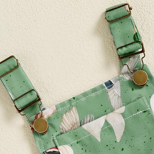 Kids Girls Overalls Shorts Duck/Bunny/Bow Print Sleeveless Square Neck Suspender Jumpsuit Summer Clothes (Green, 3-4 Years)
