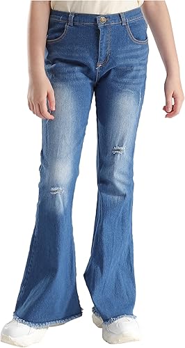 The pants with one button and zipper closure crotch, fashion denim ripped style, tassel hem, bell-bottom style
