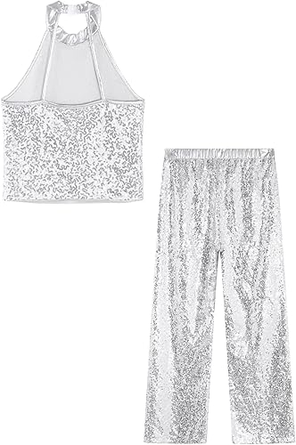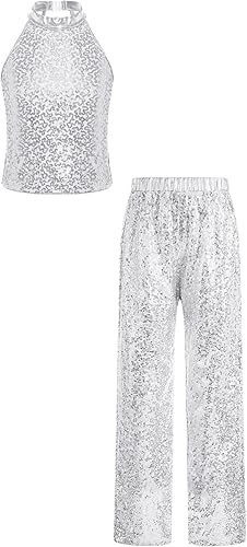 The lining of sequin crop top and pants set is made of soft fabric, no scratchy to girl's skin, breathable and comfortable to wear