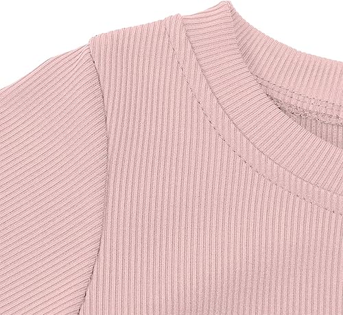 Kids Girls Solid Color Short Sleeve Outfits Bow Straps Tops Bell Bottom Pants Girl Cute Comfort Cotton Trendy Clothes(Pink,3-4T)