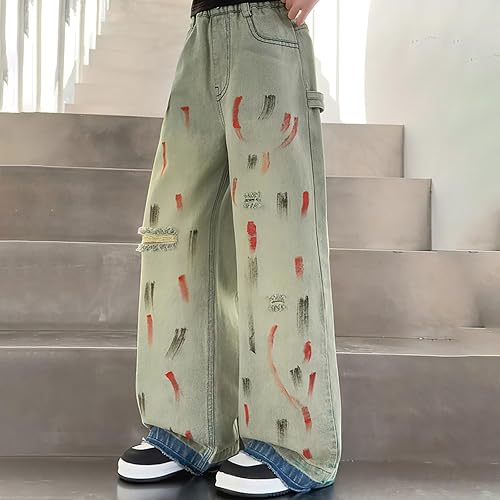 Comment on "Kids Girls Stylish Graffiti Ripped Jeans Wide Leg Elastic High Waist Streetwear Denim Pants Junior Girls Trendy Trousers(Light Blue,9-10 Years)"