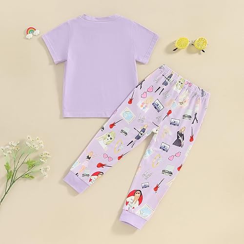 DESIGNS: Kids girl summer clothes, cartoon person print, short sleeve, crew neck T-shirts, matching with elastic waist long pants, bright colors make the baby look cute and lovely