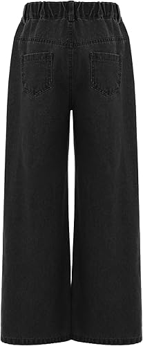 Kids Girls Wide Leg Denim Pants High Waist Y2K Baggy Jeans Causal Cute Heart Raw Boyfriend Trousers(Black,6 Years)
