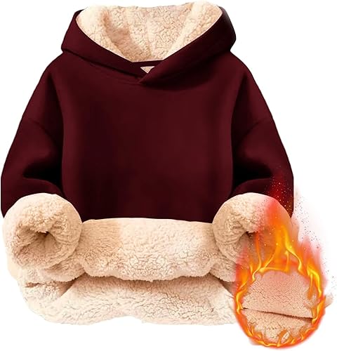 Kids Girls Winter Fleece Sherpa Lined Hoodie Warm Pullover Sweaters Solid Color Long Sleeve Sweatshirts Top 2025 Clothes(Wine,13-14 Years)
