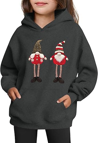 Kids Pullover Hoodie With Christmas Graphic Print Long Sleeve Casual Pocket Comfortable Fit Sweatshirt Top Girls Fashion (2-Dark Gray,3-4 Years)