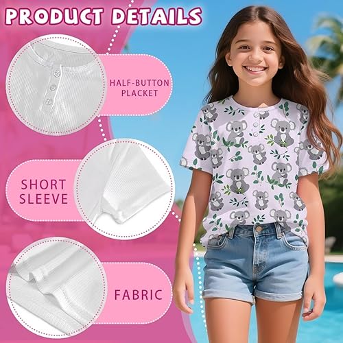STRECHY and SLIM FIT, FREE to GROW: The girls short sleeves shirts are made of high-stretch fabric and fit sizes 2T-16T. Cut according to children's body curves to ensure comfort and flexibility as they grow. Slightly tucked-in hemline adds a sense of sharpness, which can show your kids's vitality whether for school activities, outdoor picnics, or home leisure.