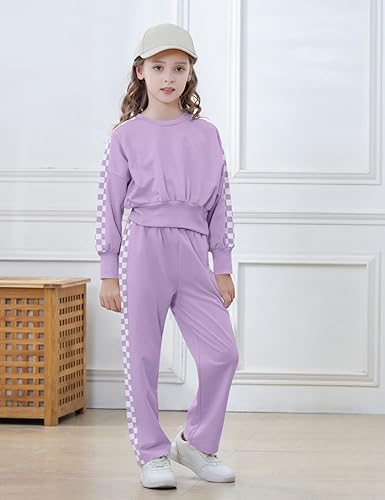 Kids Sweatsuit 2 Piece Outfits Girls Fashion Crop Long Sleeve Sweatshirts and Sweatpants (Purple,5-6 Years)