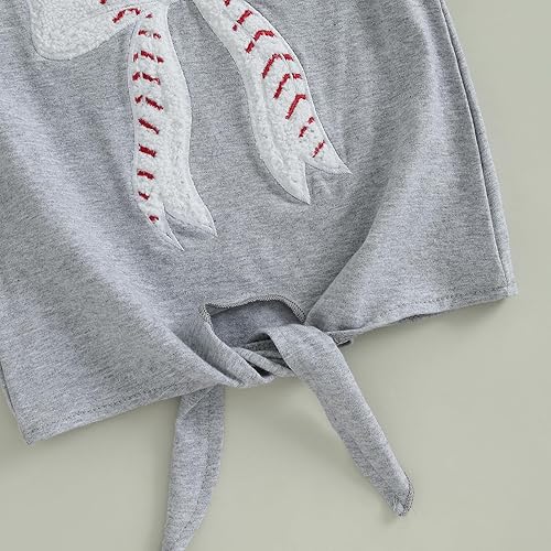 CUTE DESIGNS: Toddler girls summer clothes; Girls tops uses bowknot embroidery, round neck, short sleeve, tie knot front design; Elastic waist tulle skirts with baseball print design