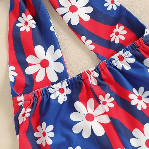 Kids Toddler Girls 4 of July Jumpsuit Sleeveless Halter Backless Floral Print Striped Flare Pants Summer Overalls(Navy Blue,2-3T)