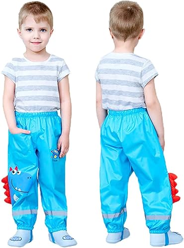 ☂Material: Kids' dinosaur rain pants are made from excellent quality polyester solid fabric, kids can shake off the water droplets by gently shaking, it is durable for your children on any bad rainy, windy, and snowy days, and easy to clean, if there is a slight stain, take a wet towel to wipe.===baby raincoat suspender rain pants girl boy rainwear kids toddler rain suit jacket coats with hood hooded rain poncho clothing rain trouser gear clothes infant water-proof coverall windproof outerwear