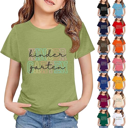 Kids Trendy Graphic Tees Back to School First Day T-Shirts for Boys Girls Kinder Garten Tees Cotton Short Sleeve Tops(Yellow-b,4-5T)