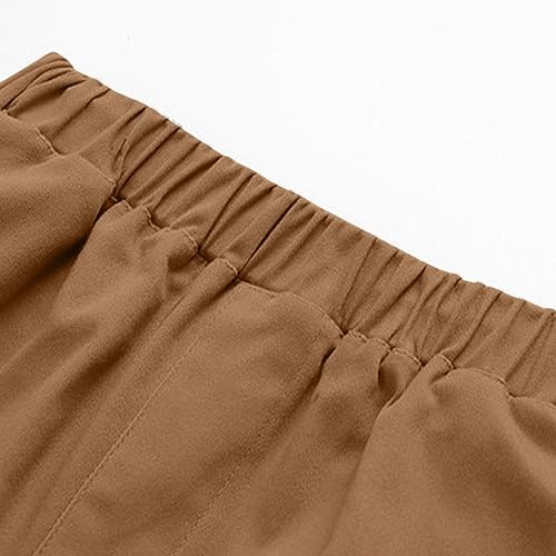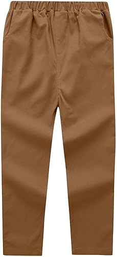Kids Uniform Pants Boys Girls Suit Pants Elastic Waist Pull-on Straight Leg Dress Pant for Casual, Formal Wear(Brown,5-6 Years)