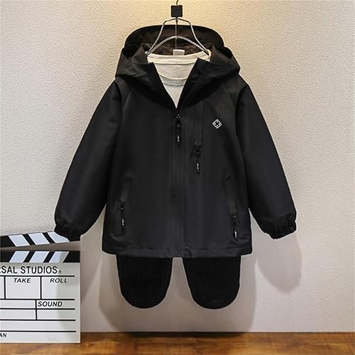 Kids Waterproof Hiking Jackets Boys Girls Lightweight Hooded Raincoat Multi Pocket Zip Up Cargo Windproof Outwear(2-black,5-6 Years)