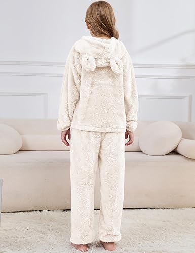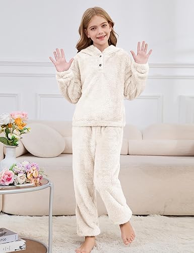 Versatile & Stylish Outfit: This flannel girl pants sets effortlessly with socks and slippers to create a leisure and warm home wear. Fluffy hoodie sets can also be paired with sports shoes or boots as a fashionable travel look.