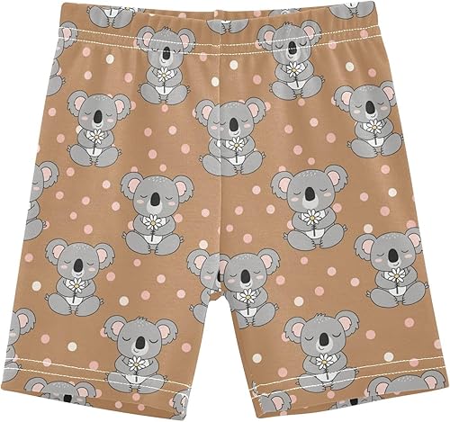 Koala Brown Girls Bike Shorts Toddler Soft Cotton Active Biker Shorts(Multi-koala Brown,4T)