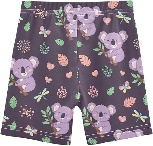 Koala Purple Leaves Girls Bike Shorts Toddler Soft Cotton Active Under Dress Shorts(Multi-koala Purple Leaves,8 Years)