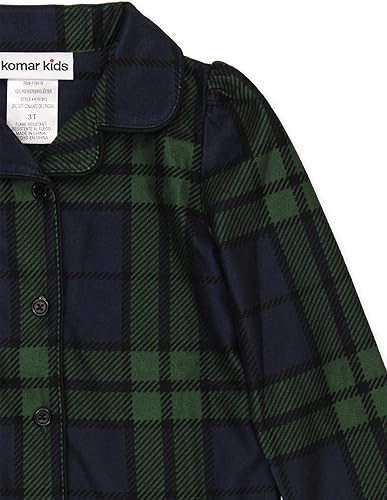 Komar Kids Holiday Green Plaid Toddler Girls 2pc Coat Pajamas (3T, Toddler Green)