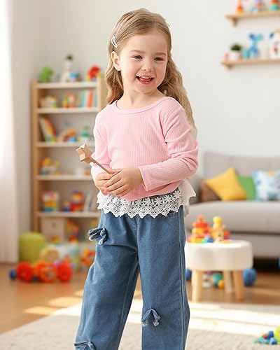 Comfortable Quality Materials: Our little girl clothes are made of high quality fabrics, long sleeve shirts: made of cotton blend to ensure softness and breathability suitable for your little girl, bell bottom jeans: high quality denim fabric, this material is not only comfortable, but also gentle on sensitive skin, suitable for wearing all day